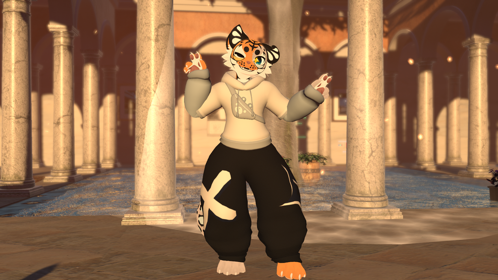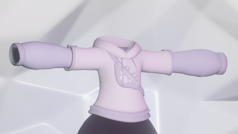The Jacket has a nice light in feel and light in color under shirt with a thicker white short sleeve hoodie. You also get a cute blue bear satchel to store all your precious belongings. Along with the jacket you get a Baggy pair of Pants. The pants although simple are very thick and comfy to wear for when you wanna cuddle or snuggle up with that bread plush I have (looking at you Goose. jk)