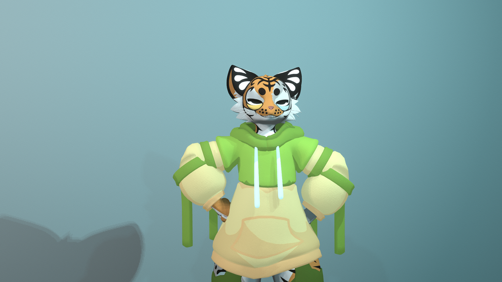 The Jacket has a nice light in feel and light in color under shirt with a thicker white short sleeve hoodie. You also get a cute blue bear satchel to store all your precious belongings. Along with the jacket you get a Baggy pair of Pants. The pants although simple are very thick and comfy to wear for when you wanna cuddle or snuggle up with that bread plush I have (looking at you Goose. jk)
